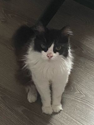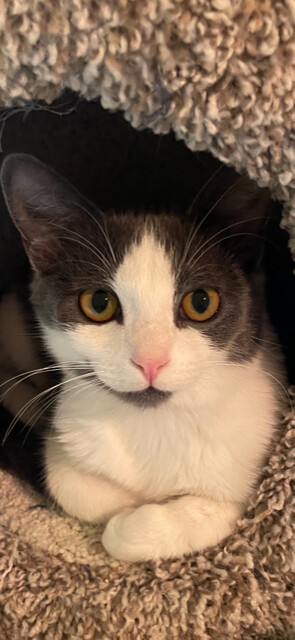 7 month old mediumlong haired gray and white kitten neutered UTD. Image 1 of 3. Wsl Farmington pic.